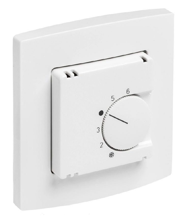 Регулятор температуры в помещении с термической обратной связью Подходит для скрытого монтажа термостата (рекомендуется заглубленное исполнение) Подходит почти ко всем линейкам выключателей ведущих производителей при использовании без поставляемой рамки. На выбор можно использовать прилагаемый комплект крышек (50 x 50 мм, белый глянец, как RAL 9010) или любой другой комплект, подходящий соответствующей линейке выключателей, (не входит в комплект поставки, доступен в любом цвете также в исполнении 55 x 55 мм).